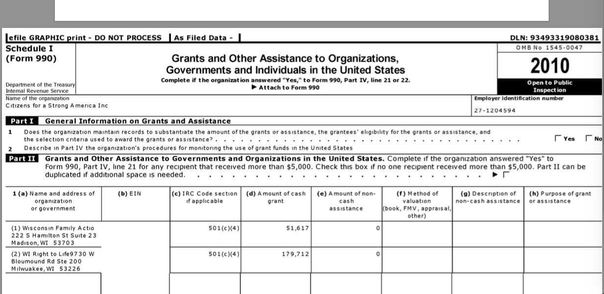 Wacko Wisconsin Pt. 2, the Walkers (piecemeal post, published 10/01/2010, updates 7/2017) » Citizens for a Strong America (EIN#27-1204594) 2015+2010 (initial) images WackoInWI post 2010 ~ SShot 2017July22 @ 8.35.40 PM
