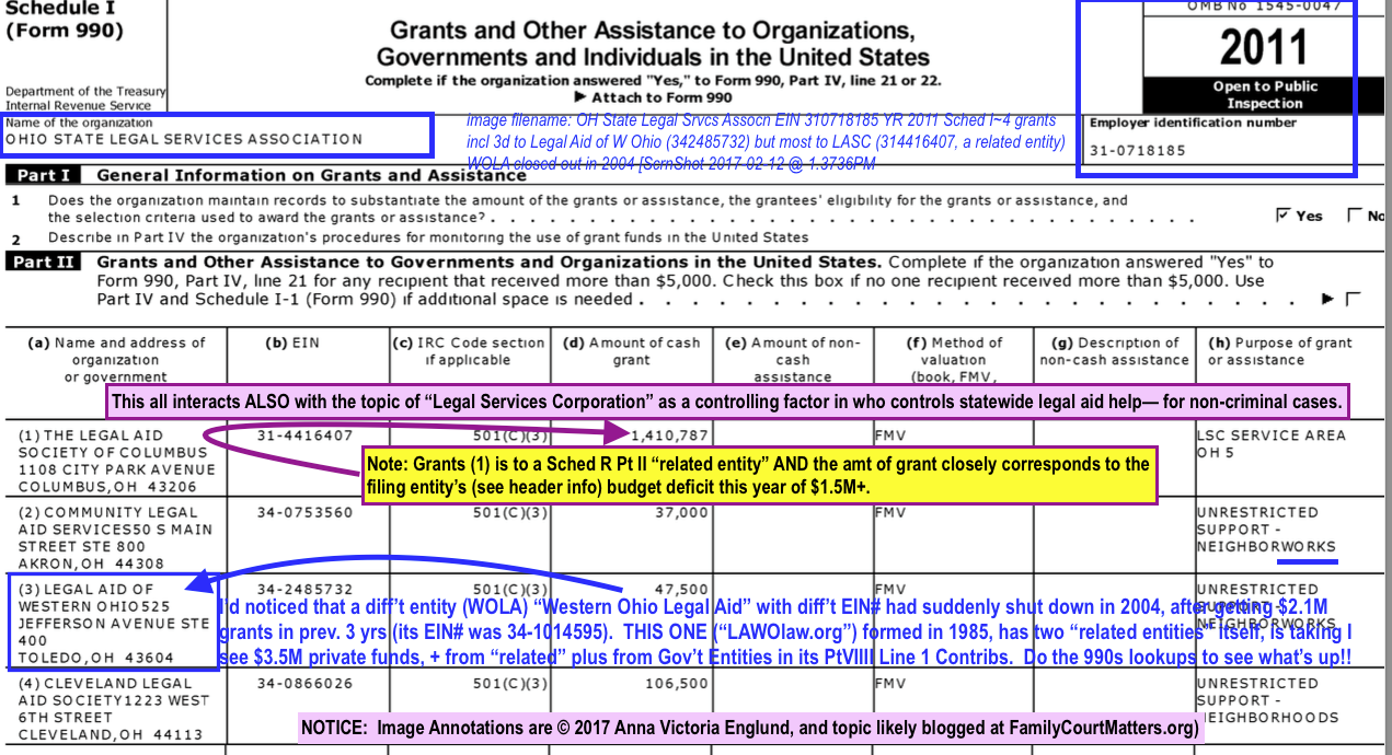 ABA, APA, AFCC, AAML, . . and others: Reconceptualize This! [Some Ohio Councils, Commissions, and Headlines, Incl. Basic Links][Chosen to represent 2012 in my 2017 Retrospective, includes its own] » oh-state-legal-srvcs-assocn-ein-310718185-yr-2011-sched-i4-grants-incl-3d-to-legal-aid-of-w-ohio-342485732-but-most-to-lasc-314416407-a-related-entity-wola-closed-out-in-2004-scrnshot-2017-02-1