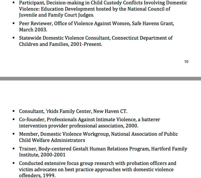 Page 10/11 David Mandel’s 2013 C.V. as found on EndingViolence.com (2017) with the next screenprint (notice last item this image) that’s all of p.11 shown (and bottom of 10)