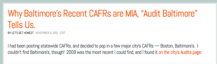 BALTIMORE (ColdHardFacts) ~Why Baltimore’s CAFRs are MIA – Audit Baltimore’ (cf Updating a Dec. 2013 FCM post on ‘Bypassing the Legal Process’ in Baltimore..” (short-linke ends “-2cT”) (to create Maryland’s Family Division) ~ 2019Aug3 Sat