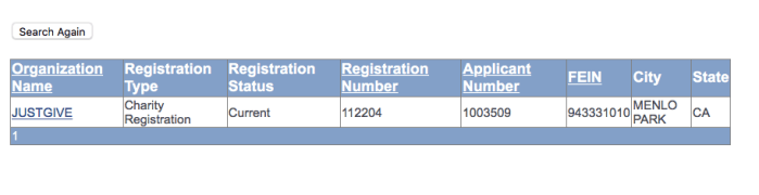JustGive.org, Calif OAG, viewed Nov. 2017, still current. EIN# is now displayed on these search results, and is: #943331010