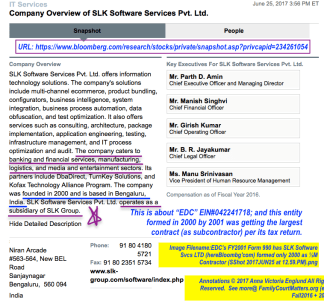 Image #5 of 6, RE: EDC (EIN#042240218) FY2001 & 2002 Subcontractor, no state or even country info provided, BLOOMBERG.com shows SLK Software Svces Pvt. Ltd. only formed in 2000(!), based in India Click to read its target clientele, and that it’s subsidiary of SLK Group