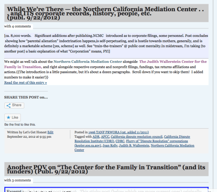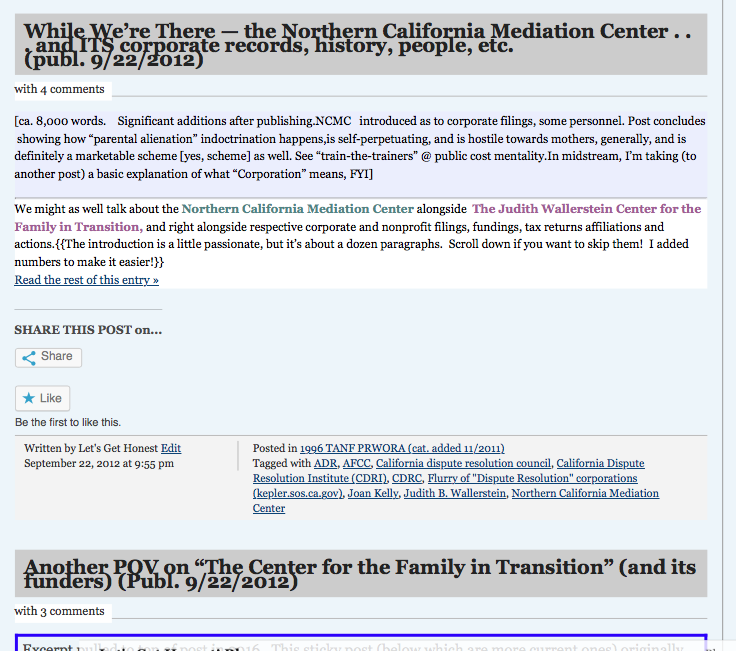 What I do here: I expose the Systems Design, and the Designers, so Y.O.U. can Show Others, and to notify those playing certain games, "you've been flagged." Heard of "disruptive technologies?" Disruptive innovations? Despite the blog's appearance, I know what I'm doing! You're looking at long-term leverage, in the hands of the "non-experts," in the public interest, not public funded propaganda to drive business to private pockets. Hence, I'm not afraid to ask: The formula for this public/private business model isn't really that complex, but the concept itself was just so devious, insidious, parasitic, grandiose, and by now, so baked into the economic, institutional infrastructure, people either don't notice, or, in a common, cowardly, but all too human response they see, and just start denying, or looking for nicer explanations of an ugly truth -- where it's heading. For lack of nicer, but still honest terms, it's heading towards yet more slavery (and tolerating it) and genocide (and tolerating it). [[2019 comments: and the ability to drive the U.S., in particular, into even more, bigger, and more costly/dangerous wars, discrediting us (further) internationally. But I wrote this sidebar many years ago..]] As a woman, mother, a family court and domestic violence survivor [yes, he was a hitter, and more], who has already 'faced the music' in more ways than I can count, to the best of my ability, I do not do "denial." I also ask the public, what's left of it, to just not go down that Denial Road, and with it lose more of their innate humanity, perception, and ethics. There is another way out, one with a conscience: Really want system change? Make up your mind to understand government financing -- change yourself first. Find and read your local "CAFR" (government's Comprehensive Annual Financial Reports), a wonderful source of information, with flow chart, descriptions of component or blended government units it's reporting on, and reporting the balances in each fund -- ever heard of a "Balance Sheet"? Looking for this also reveals just how many governmental business entities ARE there? Find them. Read. Think about what you see. What does it mean? Governments tend to pool their investments, for example, "CALPERS" (essentially created ca. 1931) is the largest "public pension" investing platform around, or at least in the country. Getting started earlier sure helped, then adding players (subscribers) over time ALSO did. In 1985, add "CII" Council on Institutional Investors (members: in 31states and D.C.) (LA Times 1985 article on Calif. Politician (state treasurer, assembly speaker) Unruh whose idea it was for the Council so institutional funds could "flex their muscle"; and push for corporate governance reform. CII members now control $3 trillion of assets)-- my point being, government holdings are invested and when pooled like this, are major clout, but the average person never reads even a single government entity's annual financial reports to take a look. (I wasn't aware of them til 2012!) Governments not only invest their funds in business, they also by legislation, patenting, and protections, set them up to win, or lose. So, "know thy government" is a great place to start. (See blog/see links in the blog). 2019 updates: This widget's (text box) full contents, along with others', now can be viewed (better -- full-page-width) at: Many of My Sidebar Widgets Now Live Here...[Published July 9, 2019]Published short (url short-link ends "-abt") (and may eventually replace current sidebar contents, or most of them). I also published a second, similar post with other sidebar widget contents(url short-link ends '-ahh') on July 19, 2019. Thanks for your patience (and any NOT-tax-exempt donations) meanwhile.//LGH |