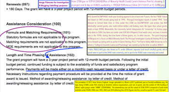 The annotations are explaining the quandary it puts public inquiry in, should someone actually know a CFDA# and have a need to search grants issued under it — when it doesn’t show up..CLICK TO READ