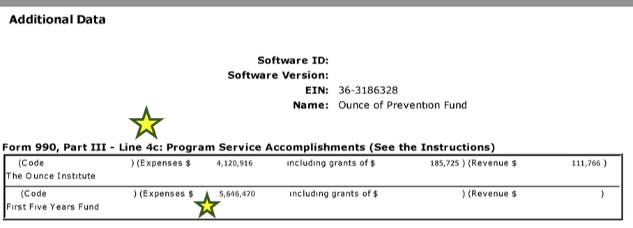 Understand Statewide “CADV” Funding (CFDAs 93591, 93592, 93671, and 93136 grants to Statewide Orgs) But Also Check Out “Family and Community Violence Prevention” (93910) in all its Male/Minority-focused Wealth — Over $99M to One Recipient under ONE Principal Investigator, Spanning 10 years — and Glory. » oz-of-preventn-fund-fy2014-ein363186328-hides-ffyf-under-%22addtl-data%22-for-pt-iii-line-4c-5646470-exps-4120916-to-%22the-ounce-institute%22-incl-some-grants-and-some-revs-under