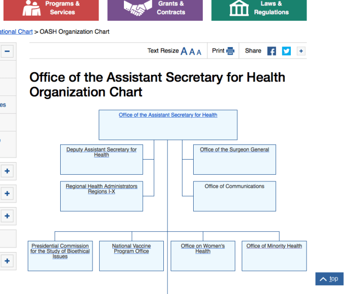 (no attached pdf this is so easy to find on main HHS.gov website) under OASH, showing (partial image) Office of Minority (and Women’s, next to it) Health. There are more offices not shown in the image.
