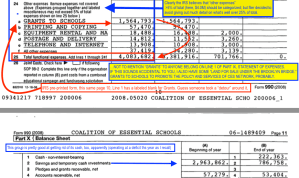 Basic principle — look for the financial footprint in a form that can be compared to other entities of similar classifications (private, or government), and which will show (in particular) where the assets are being held and invested while the organization is busy seeking more revenues besides those already available from the investments. Notice how money is handled, and reporting. Here, we are talking people that are declaring themselves (and their networks) as “the” problem-solvers for public school, in which the public has already so much invested. How do they report? DO they report? Are they reliable, ethical, honest, and transparent in deed, or just in self-description?