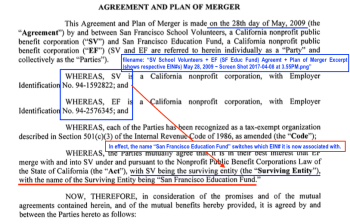 Then I look at SF EdFund (which was new to me) and discovered that two nonprofits started in 1964 and 1979, respectively did a 2009 merger when one’s assets were around $7 million, and that the originally named “SF EdFund,” being the non-survivor, left behind its old EIN# giving the surviving one (formerly “SF School Volunteers”) the now-unused business name of “San Francisco Educational Fund”). So the EIN track record of the current SFCESS partnership doesn’t pre-date 2009; however as SFCESS started in 2005, who knows whether it maybe dealt with the prior one.
