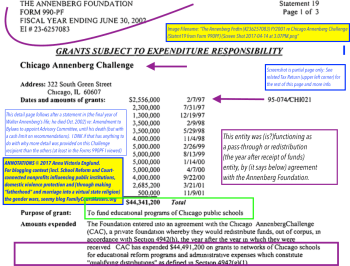 The first several paragraphs here overlap from the originating post, before I “get into it,” scrutinizing some of the Forms 990PF and relationships between various Annenberg projects and their main foundation. *** [see below next para. and link]