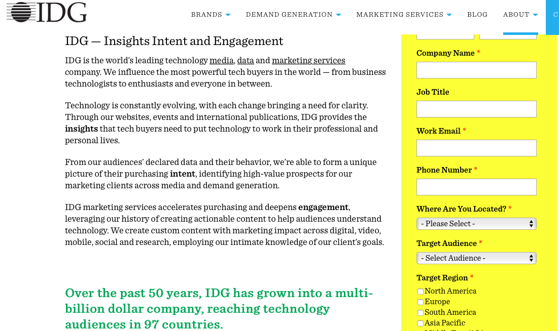 IDG about page, linked from older CNET article on the sale of CMP Media to UBM (UK firm). IDG pageview however is current.