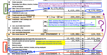 From its Schedule A of Support, I see that it apparently was funded (with about $3M!) the first time in 1999, only a few years earlier. From its Balance Sheet (partial image) we see it is claiming $6M+ is due TO it, but its also holding a $10,000,000 “mortgage or notes payable” as a liability, and it doesn’t say which. In fact no explanation that I could see for what the $10M might represent is given. 11 images in all. I put some time into captions, but am not sorting the related pdfs. My order of “images” doesn’t exactly match the page order within the Form 990.