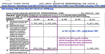#6 Sched A of Support, top Educ Entrepreneur Fund FY2001 EIN#541966125, showing first funded 1999 ($3M), 2000 ($3M); this is 2001 return. If it’s mosty investments, an 18% ROI over two yrs.