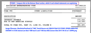 Image #10 EducEntrePrenFund (cf NAS David Kearns etc) EIN#541966125 FY2001 OTHER LIABILITIES STATEMT 5=272K interest (on their 10M loan?) and 110K due NAS (Screen Shot 2017-04-25 at 7.50PM