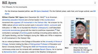 Bill Ayers Academic career from “Wiki,” including controversy on his 2010 retirement for having (allegedly) dedicated a book to, among about 200 others, the assassin of Robert F. Kennedy, Jr. RFK’s son Christopher G was involved in the university and protested making him professor emeritus.
