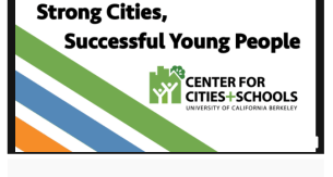 It came up again on noticing the Center for Cities and Schools (founded 2004 at UC Berkeley) who is currently featuring a “Strong Cities. Successful Young People” banner (one among six) on its home page. In fact UCB is even fund-raising for this project. (See two colorful images below left).