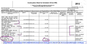 but on reviewing the tax returns (just a half-day’s worth or less) is already looking more like a sort of front group, delayed filing its first tax return for several years (after reported receipt of funds — which is illegal) and barely filled in the blanks, once they started. Their connections to subgrantees is probably more relevant — which is not obvious at the UCBerkeley 2008 Roundtable level. The DC nonprofit’s website collects via “Network for Good” and obscures its own financials, showing a reticence to reveal who, as an entity, it is.