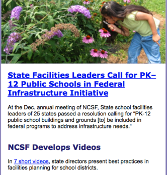 +++ (that 2016 report pictured above, referenced on the NCSF website) State Facilities Leaders Call for PK–12 Public Schools in Federal Infrastructure Initiative. NCSF has a logo and letterhead listing their board members (public officials in various states). The next image is from bottom of p1, top of p2 (to catch the logo) describing what I just referenced in the lsat paragraph: “It’s complicated!”