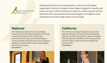 So, who is “The Advancement Project?” It is probably in California — the website reveals NOTHING but brief rhetoric about their purpose, after which readers must choose either “National” (photo of a woman), or California (photo of a man) for more information: