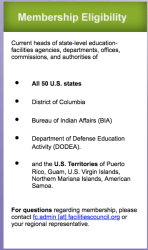 territories or (membership images below) “Bureau of Indian Affairs.” SO, the membership fees would be coming from public sources, presumably! Fewer than half the states are involved so far. Like 21st Century Schools Fund, I see the National Council on School Facilities is not too interested in posting its own financials so far.