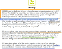 Click image to read: Center for Green Schools “History” referencing Clinton Global Initiative and 2007 start