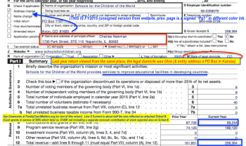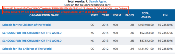 Particularly after I saw the nonprofit “Schools for Children of the World’s” tax returns… associated with just one member of just one of the six “work groups” convened by the four Leadership Team entities**