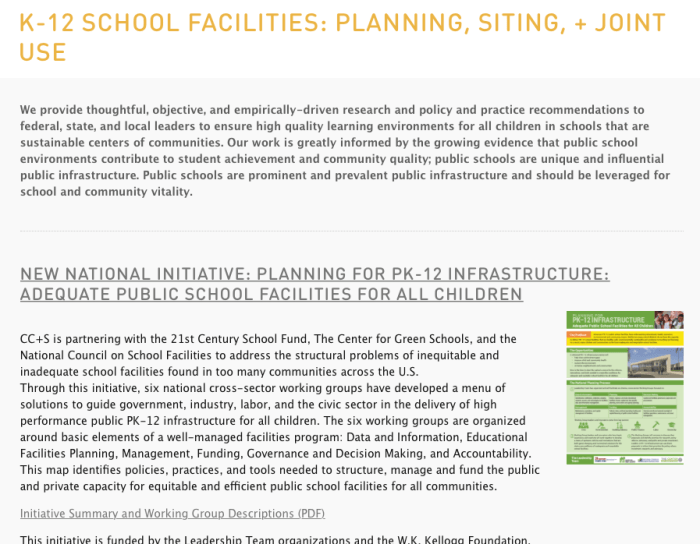 Source of quote: “http://citiesandschools.berkeley.edu/news/new-natl-initiative-planning-for-pk-12-infrastructure”