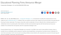 Well, well, well, in Oct. 2016, DeJong-Richter (per PRNewswire, now “a cision company”) announces its merger with “Cooperative Strategies” (a new name for an educational planning company based in Irvine, California) (next image and this link). From that link: