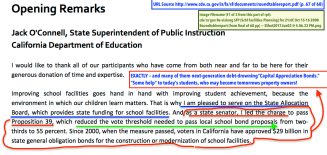 I spent several days on this, learning and posting at the same time; I already knew the school infrastructure nationally and in California was massive, was undergoing not just structural, but also funding and raising-capital changes, some of them made possible by passing “initiatives” to get on the state ballots. Initiatives can come from either the legislature, or from “the voters” (which, cases in point here also, may well included moneyed lobbies who stand to profit as developers, architects, or government employees (high-ranking) when billions more are made available for their projects).