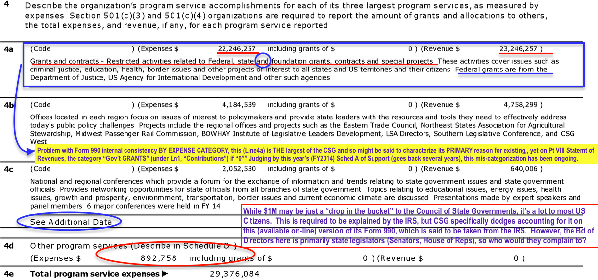 Why Bother To Unravel the Proliferation of Private Associations Representing Public Offices? Well, re: the sponsored database project SchoolMatters.com, That Might be a $10M Question for “The Council of Chief State School Officers” (CCSSO.org) in D.C., Grantee, and “The Broad Foundation,” in Los Angeles, Donor. (Publ. June 16, 2017) » CSG’org EIN#366000818_201506_990 PAGE2 Pt III 4abcd, SShot 2017Jun16 @12.38PM