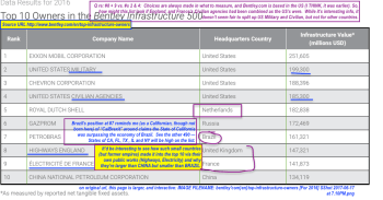 Infrastructure Showcase 2016 Bentley Infrastructure 500 Top Owners (This “showcase” features colorful piecharts with nearly invisible font (although you can clearly see what US is nearly HALF) and moving the formerly feature table (which I found more helpful) to the bottom, also fine print, and their description, also fine print. Welcome to the sub-verbal, post-literate, visually-oriented culture. A link is provided (though not active) in the short description of the piecharts (with tables below). Please view both, with attention to some of the fine-print labels on a series of piecharts, because I again question how the “United States” can own 47% of this asset infrastructure, yet still be in major deficit. Also see the piechart showing “by sector” and what portion “Public Utilities” (by owner and by value) is.