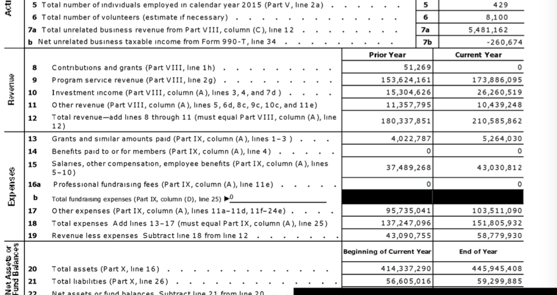 PMI (FYE2015) Pt I. Most of Page 1 except header and signature block. EIN# 23-1887442, as shown in post above. 6/29/2017.