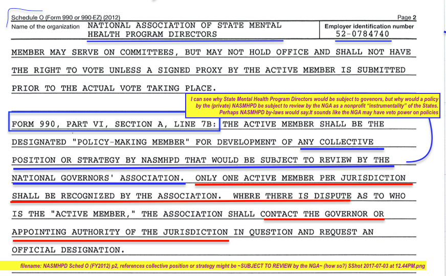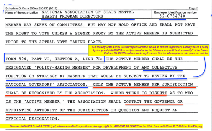 Other Considerations on the NASMHPD, MHA, and This Type of Networking (Oct. 25, 2014 post updated June/July, 2017, Publ. July 3) » NASMHPD Sched O (FY2012) p2, references collective position or strategy might be ~SUBJECT TO REVIEW by the NGA~ (how so?) SShot 2017-07-03 at 12.44PM