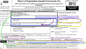 AFI FY2013 Form 990, Pg1 top: Click to read annotations and a sample of our local (city|county gov’ts) public employees’ (partnering with ICMA) handiwork when it comes to their account to IRS.