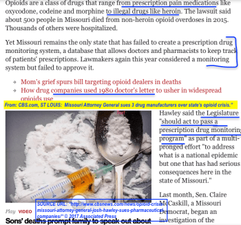 Missouri AG sues 3 drug manufacturers (CBS.com, 6/21/2017) re Opioid Crisis. CLICK IMAGE for REST OF ARTICLE (at least while the source retains the active link)