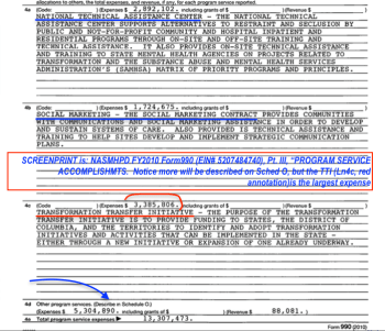 Here’s just one example I discovered (today), reviewing a link to a 2009 study I cited in 2014, and about a major subcontractor for the study I was looking up, which was referenced on one of the (I believe it was NASMHPD) tax returns, as a Program Purpose: