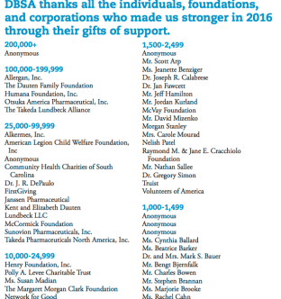 DBSALLIANCE.org (for Depression Bipolar Support Alliance) (formed 1985, in Chicago, Illinois, legal domicile Illinois; EIN#363379124).and