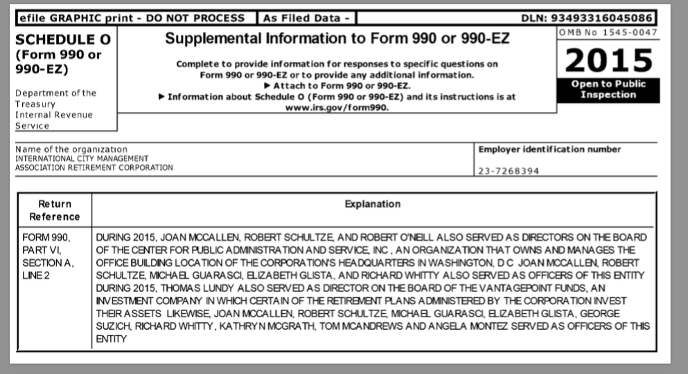 Even More Considerations on NASMHPD (and DBSA, and NAMI), and MHA. See Also Recent Epidemic? of Attorneys-General Suing Big Pharma over the Opioid Abuse Epidemic. [Publ. July 6, 2017] » ICMARC (ICMA RetiremtCorp EIN#23-7268394) from FY2015=CalendarYr Form 990 SShot 2017July06 @5.31.16 PM