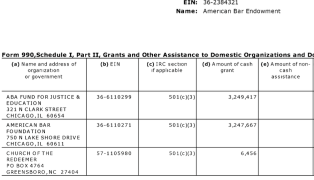 ABA Endowmt Grantees (FY2015) notice the top two, over $3M each, are to the other two tax-exempt related entities (#1 of 3 images)