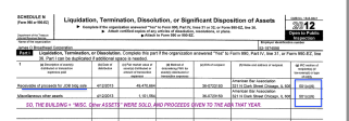 Pt I pg 1 top showing JOB entity termination year, and its founding only 1994, and investmt proceeds of $7M+ prior year. Held title to a DC Building for the ABA