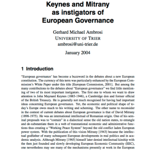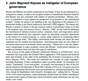 From Keynes and Mitrany (as shown in image) Jan. 2004. Click image to enlarge. This caption contains imp’t. missing info from BOTTOM of Page 1/TOP of Page 2 here: **” “…Although Mitrany [1965] himself later denied intellectual kinship with the then just founded and slowly developing European Economic Community (EEC), one nevertheless may see many of the mechanisms presently at work in the European setup as being related to visions which Mitrany propagated for trans-national governance in a seemingly distant future.1 **