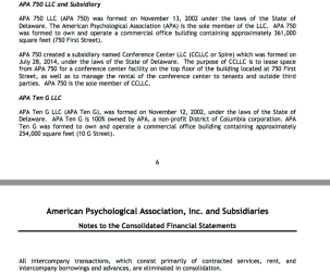 [[Obviously there are more “related organizations” for both APA and ABA, as well as state chapters, and other related by purpose if not fiscally by common governance, associations. My purpose here is to show enough to convey the general idea that both organizations, either separately or taken together, wield major influence and control more assets than a look at a single tax return on the surface, would show.