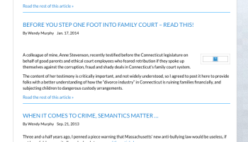 Click image to enlarge image, or here for the “Before You Step One Foot into Family Court” article. The content is introduced briefly but seems to be primarily Ms. Stevenson’s. This particular category (from WendyMurphyLaw.com) not too active — most recent entry dated July 2015, under category “Victim’s Rights“
