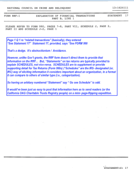 What about the Prior and Past Year’s Revenues and Expenses (Lines 8-19 on Form 990, see above image) in the context of other parts of the return (for example, some organizations have “related entities” and distribute debt to some, revenue to others — in which case only the tax returns compared and the financial (consolidated) statements would give the larger picture)? A single PART of any government entity (like the federal government is only part of the story, and a single part of any statement (or tax return) considered in isolation, is not the whole story.