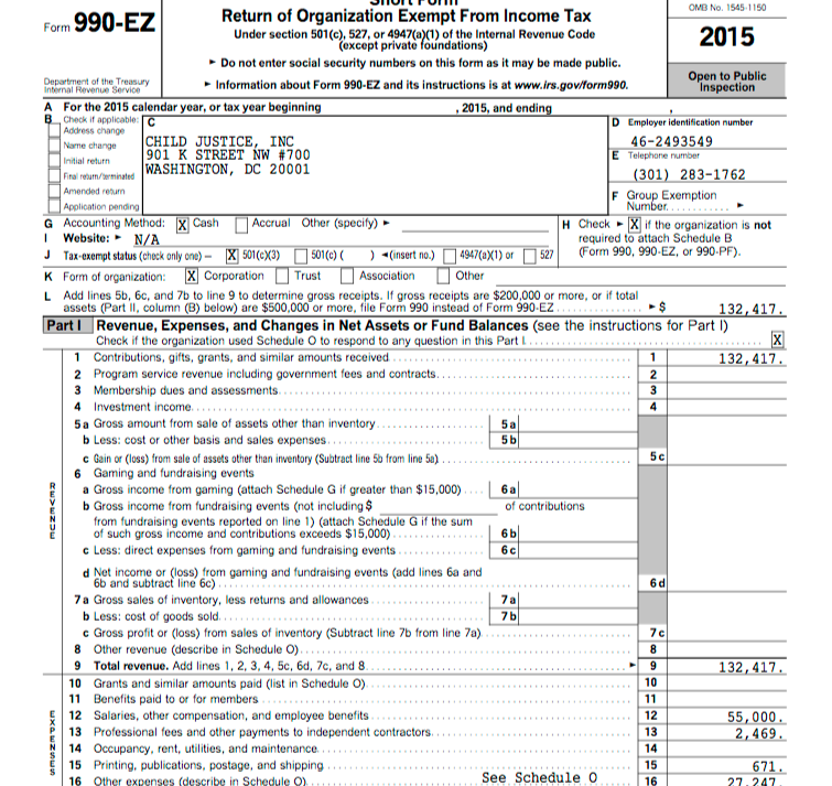 Featuring Five Vital Posts on …. Our Assigned Places in the Tax Continuum Pecking Order (from ABA, APA post update) [Publ. July 12, 2017] » ChildJusticeInc in DC, EIN# 462593549, FY2015 Form 990EZ ** from CJI website [Salaries=55K not 60K, Ln21 matches Page2 top amt) ~ SShot 2017July12@5.06.42 PM