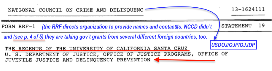 Featuring Five Vital Posts on …. Our Assigned Places in the Tax Continuum Pecking Order (from ABA, APA post update) [Publ. July 12, 2017] » NCCD (EIN#131624111 p5 of 5 ONLY (Statmt19 cont’d) RRF FY2010 (ends Jun2011) Gov’t Grants Regents of UC Santa Cruz and USDOJ*OJP*OJJP* SShot 2017-07-13 at 6.12PM