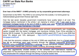 Below that extended top section are other sections, including Walter Burien’s article responding to one promoting State Banks (both dated September 2010), and some of the documentation in that short statement (two US Treasury reports right after the 2008 recession). I think these visuals lend some credibility to the concept that that recession was no accident. I also then take a look at two different websites re-posting each writer’s (Brown’s, Burien’s) articles.