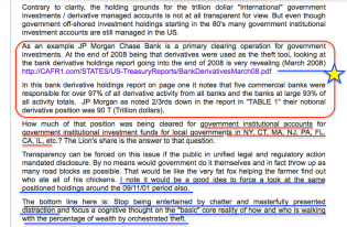 In Spring 2010, in one of two parallel (but not dynamically intersecting on either website so I wouldn’t call it a dynamic “exchange,”) web articles (see annotated images), a statement is made by Web of Debt author Ms. Brown, quoting a state chapter of the Government Finance Officers Association (“GFOA,” who was around when the CAFR system and rule-making authority was set up by another entity in the early 1970s), that local governments needing to keep “from 20% to 75%” of their budgets for a buffer. The comment of course ignores the issue of state and the USA (federal) governments and where they have pooled institutional funds, etc.