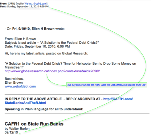 This post quotes mostly Walter Burien & Ellen H. Brown (“EHB”). I quoted from two different EHB articles, one in June May, 2010, and another in September 2010, and from Burien’s response to the second.