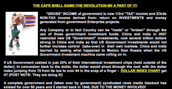 Tagged with "The Mysterious CAFRs How Stagnant Pools Of Government Money Could Help Save The Economy" By Ellen Brown 5-21-10, "Web of Debt", 2008 reconsidered, A Solution to the Federal Debt Crisis? Time for Helicopter Ben to Drop Some Money on Mainstream 9/10/2010 by Ellen Brown (in GlobalResearch.ca), ALWAYS check the cites!, BobHurt.com citing CAFR1 on State Run Banks, Bruce E. Cahan (promoting StateOwnedBanks at Stanford's CIS), Carl Herman (WashingtonsBlog.com), CIS - Stanford U's The Center for Internet & Society (2000ff) - Lawrence Lessig III-founder, Cyber.stanford.edu, Ellen H. Brown (Web of Debt), Florida Adverse Possession (in re foreclosures), How to Read a CAFR -- Try start at the top and consider the TOC!!, John E. Wolfgram (IRS injured spouse- law school educ - State Bar - travails), LAIF (Local Agency Investmt Fund=a FIDUCIARY fund), PMIA (Pooled Money Investmt Account) in CA, State Banks pro and con, State of CA FYE2009 (detailed), USTreasury Repts Q1 2008 show speculation, Walter Burien (CAFR1.com) TRFs, Website GlobalResearch.ca and administrator Michel Chossudovsky (see also Andrew Gavin Marshall)