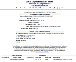 NY Corporations Search shows “The Hampton Institute” only incorporated Feb. 2017. It did not show under “CharitiesNYS.com” under a name search.